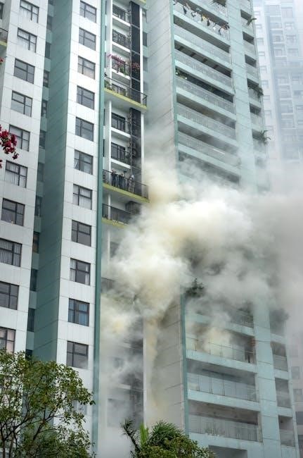 In the event of a fire, prioritize immediate evacuation․ Do not attempt to retrieve belongings․ Crawl low under smoke, as cleaner air remains near the floor․ Once outside, stay outside and account for all individuals․